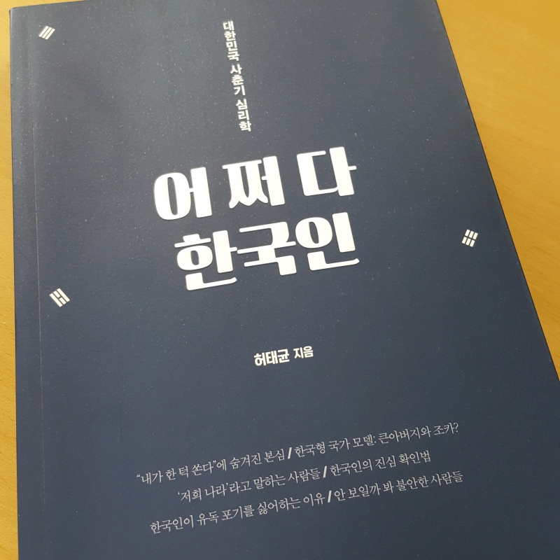 주말 TV 채널을 돌리다가 ‘어쩌다 어른’이라는 방송을 보게 되었다. 그간 설민석의 한국사, 최진기의 사회학 강연을 재미있게 봤었는데 심리학에 대한 내용을 다루고 있었다. 한국인의 심리에 대한 내용을 재미있게 설명해주는 심리학과 교수님이 강연자였는데 방송 내용이 이미 책으로 쓰여진 것을 알았다. 제목도 ‘어쩌다 한국인’! 저자는 한국 사회가 여섯가지 특성을 가지고 있다고 말한다.