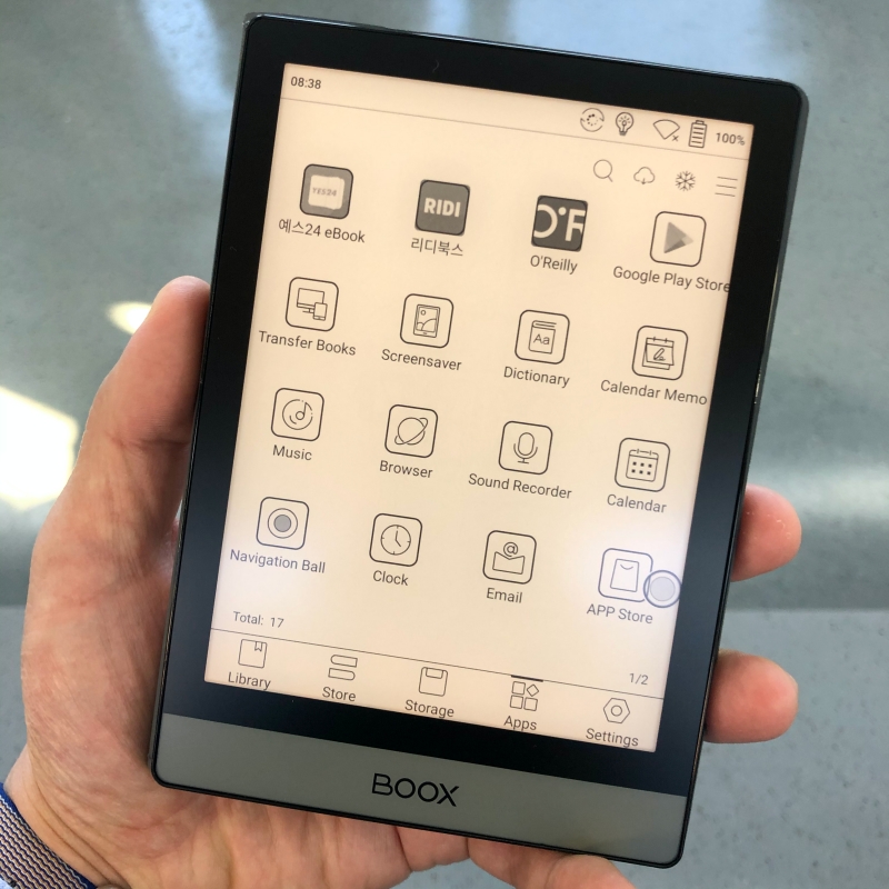 7.8인치의 ‘페이퍼 프로’, 6인치의 ‘크레마 카르타G’를 사용해보니 6인치가 휴대용으로 잘 맞아 ‘Onyx BOOX Poke2’를 구매했다. 간단한 설정으로 GoogleStore를 활성화하고, 전자책 앱을 설치하면 끝!! 전자책 앱들이 컬러 디스플레이를 가진 기기에 최적화 되어 있다보니 앱에 따라 잘 안보이는 메뉴가 있거나 형광펜 기능을 사용할 때 불편할 때가 있다. 그리고 기기 자체의 설정이 많고, 앱도 각각의 설정이 다양해서 전용 전자책 리더기보다 세팅에 신경을 써야한다.